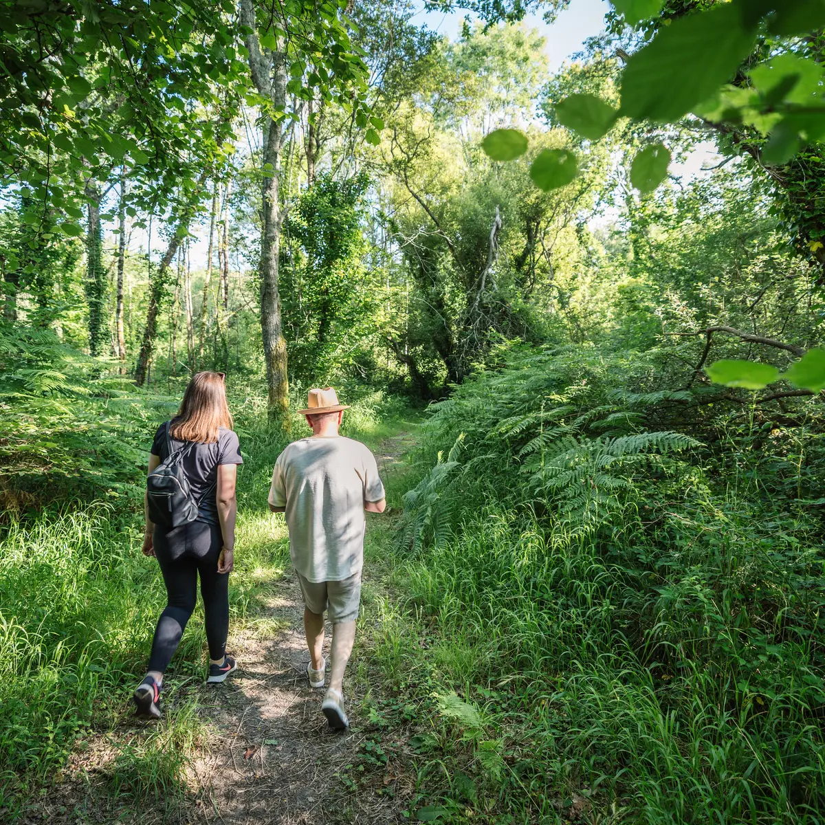 Quelques mètres plus loin, s’engager à gauche sur le chemin boisé. Longer ce chemin sur ? mètres. A l’intersection en T, prendre à gauche